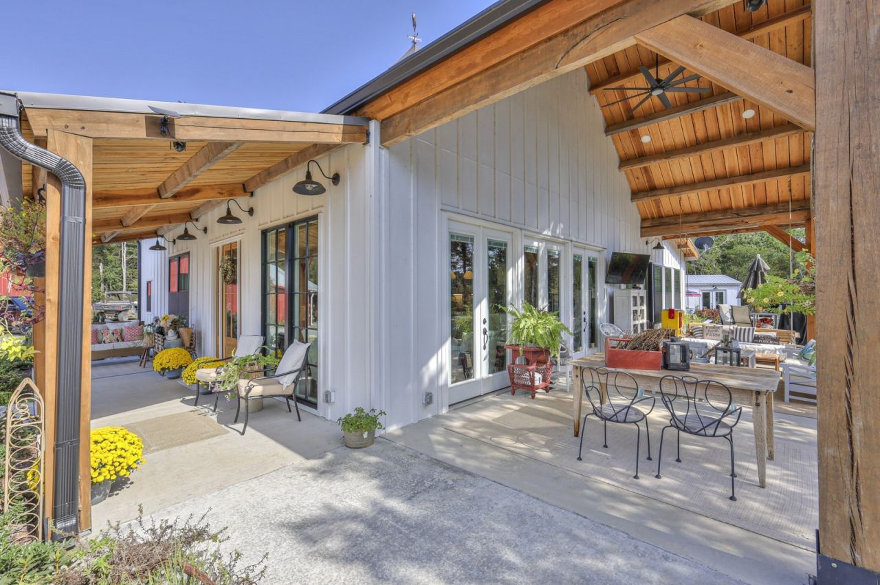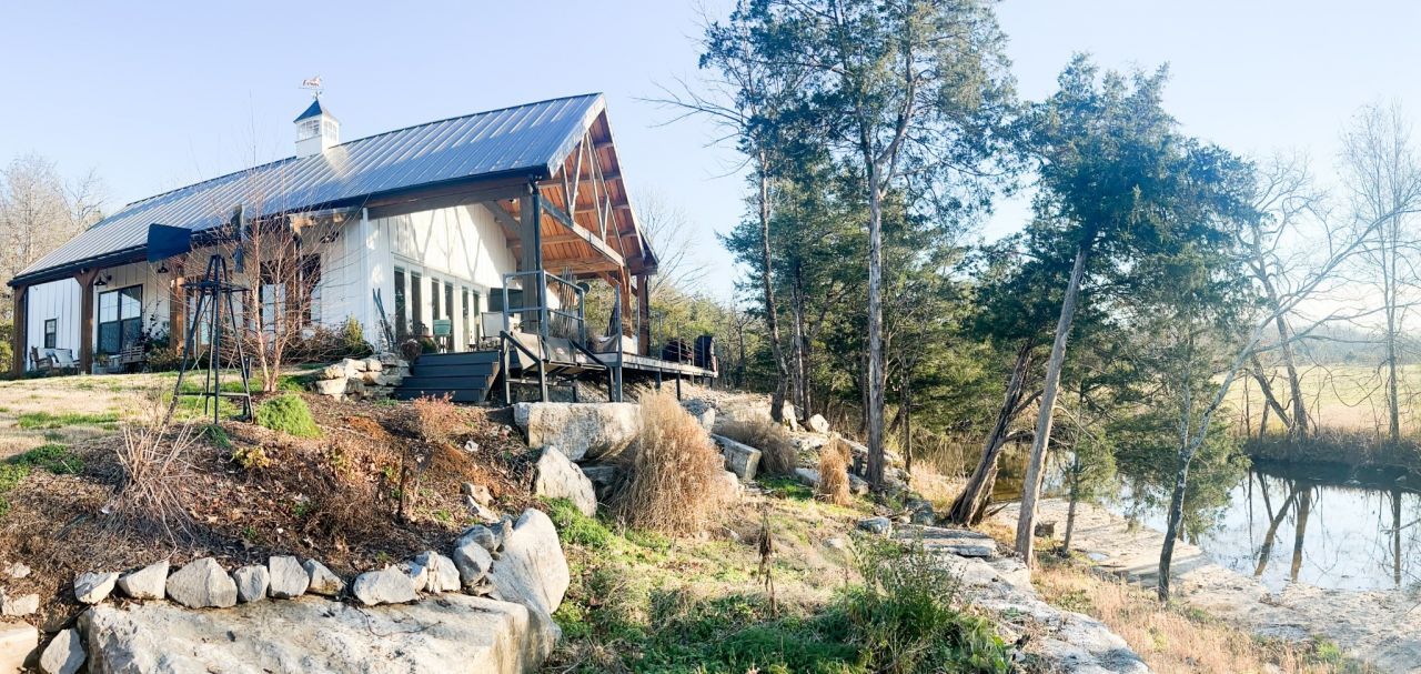 Dream Timber Frame Estate On 26 Acres with Amazing Creek Views! This designer timber frame estate blends privacy and rustic elegance with modern comforts, boasting 26 creek-front acres with stunning Sugar Creek views, and just minutes from town. 'Inside, discover open concept living with 10 ft shiplap, exposed beams,multi-zone heated concrete floors, and a gas fireplace, flowing to huge, covered porches. The chef`s kitchen features Z-Line appliances, live-edge oak counter tops, custom cabinets and a butler`s pantry. A main-floor primary suite...read more
