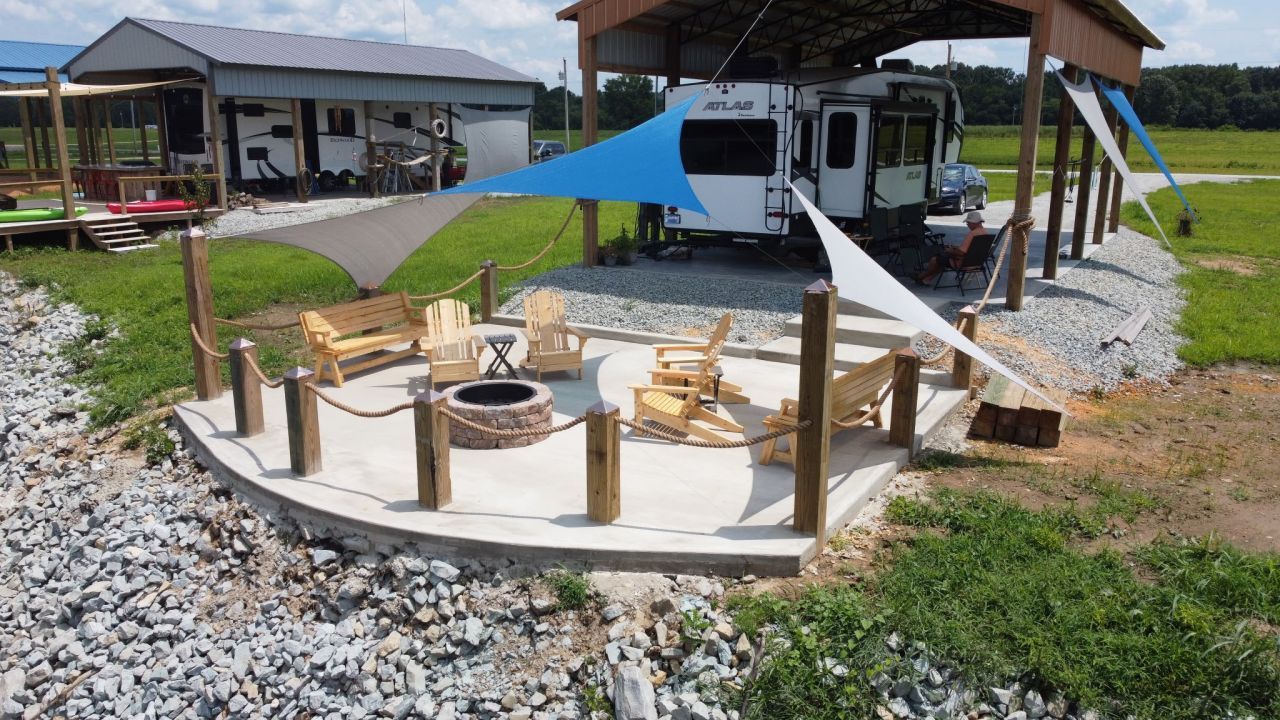 Impressive RV lot in popular White Oak Landing! This beautiful RV site features a big lot that is 90 feet wide. (Most lots in this development are 60 FT. wide). The pavilion is 24X40 and has a nice concrete slab and firepit by the water's edge. A steel deck and rock along the bank make a great spot for fishing. White Oak Landing is a gated RV community that sits on the banks of the Tennessee River/Kentucky Lake. Lot owners can rent their lots out for extra income. There is no HOA. Lot owners pay a yearly maintenance fee of $570 to cover upkeep of the gate, private roads, and common areas. A community boat ramp is also available in...read more