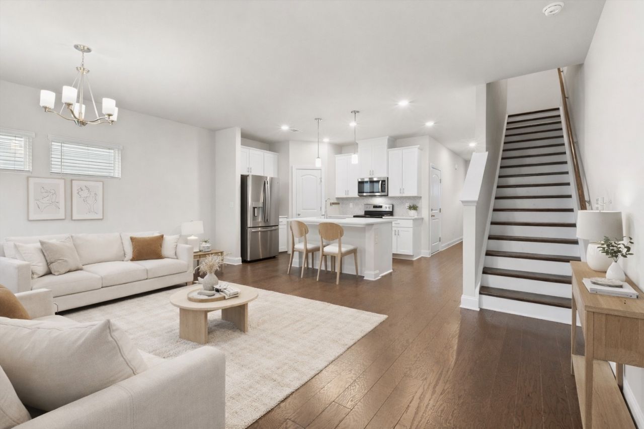 Beautiful, like-new end-unit townhome offering modern finishes, abundant natural light, and a layout designed for both comfort and functionality. This home features stainless steel appliances, fresh paint throughout, and an in-unit washer and dryer, making it truly move-in ready.The main level showcases open-concept living, anchored by a stylish kitchen with a large island, Quartz countertops, a beautifully tiled backsplash, and an expansive pantry - perfect for everyday living and entertaining alike. Upstairs, enjoy a versatile loft/flex space, a spacious primary suite with ensuite bath and walk-in closet, and two generously sized secondary...read more