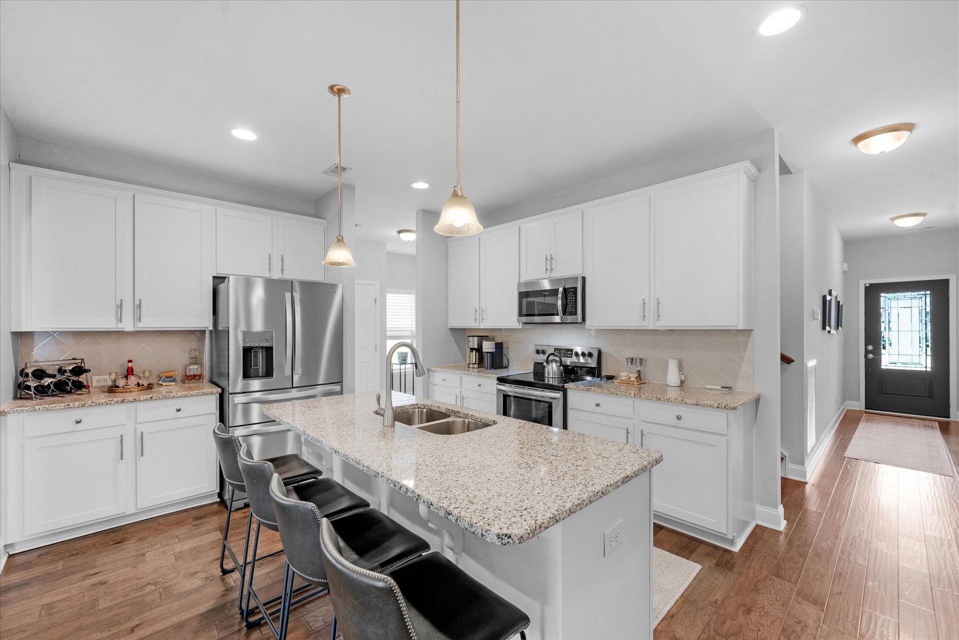 Awesome floor plan in this move-in ready home! You'll get exactly what you've been looking for: an owner's suite on the main floor, hand-scraped hardwood floors throughout the first floor (bedroom 2 has carpet), a covered porch, fenced yard, custom electric fireplace with enclosure, no steps into the home, water softener and no neighbors behind you. These features check a lot of boxes!This versatile layout provides all the space you need. On the main floor, the owner's suite offers plenty of room, along with a bath featuring vanities, a large fully tiled shower, and a spacious walk-in closet. A secondary first-floor bedroom and bath are...read more