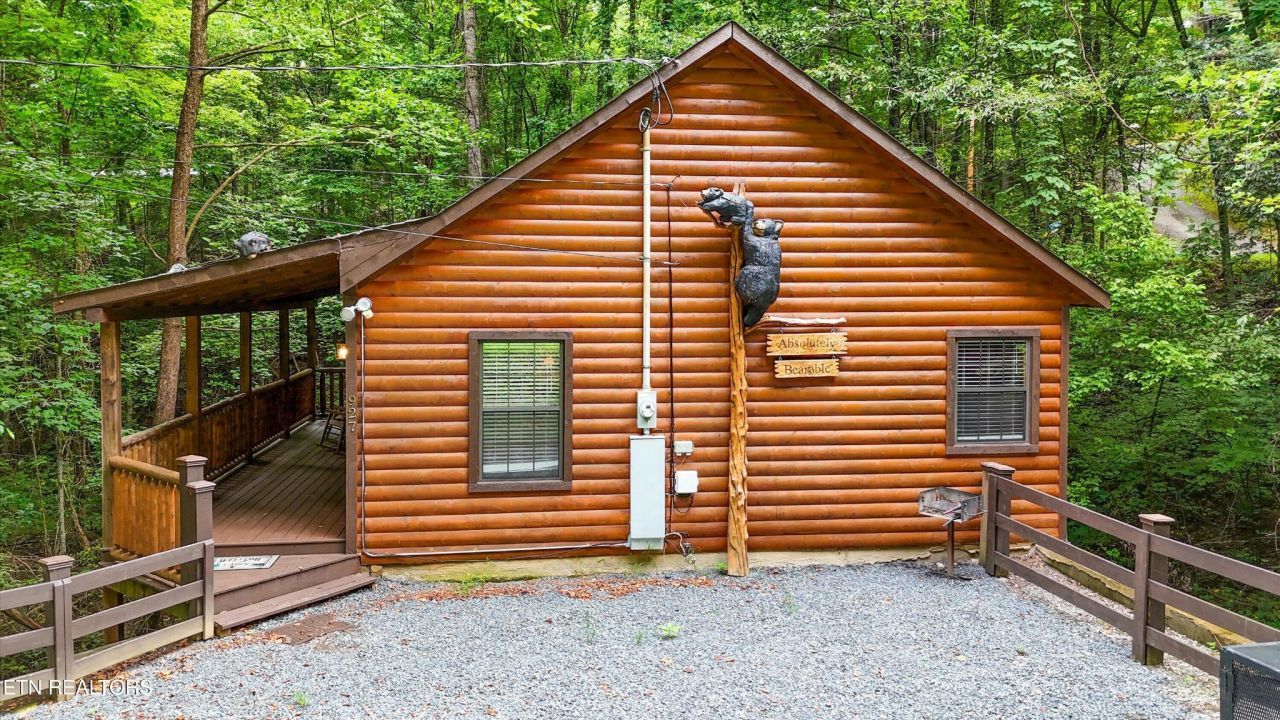 Welcome to Absolutely Bearable -- the charming bear-themed cabin in the Sky Harbor subdivision that's as cute as its name! From the moment you arrive, you'll be greeted by the wooden bears peeking over the roof at the entrance and the two more keeping watch along the side of the cabin. Freshly graveled parking makes for an easy arrival a long with seeing the recently stained cabin and deck, and once inside, you'll notice the kitchen and bathroom/laundry room have brand new flooring for a fresh, updated feel.Perfect for couples and honeymooners, this cozy getaway is filled with personality. Challenge your sweetheart to a game of pool with...read more